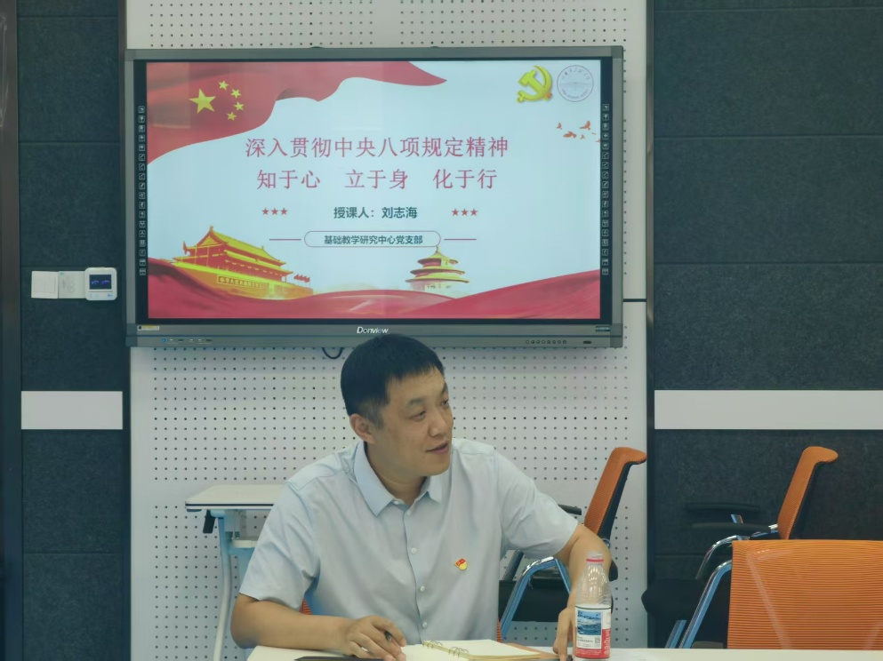 刘志海以《深入贯彻中央八项规定精神:知于心•立于身•化于行》为题讲授专题党课。他强调:一要在“查”上见真章,深入查摆问题,精准剖析根源,引以为戒;二要在“改”上求实效,紧盯突出问题,制定务实整改措施。全体教师要以身作则,严守纪律底线,弘扬清风正气,将“五个坚持、五个注重”办学原则融入教育教学全过程,将学习成效切实转化为工科物理课程建设与创新的实际成果。